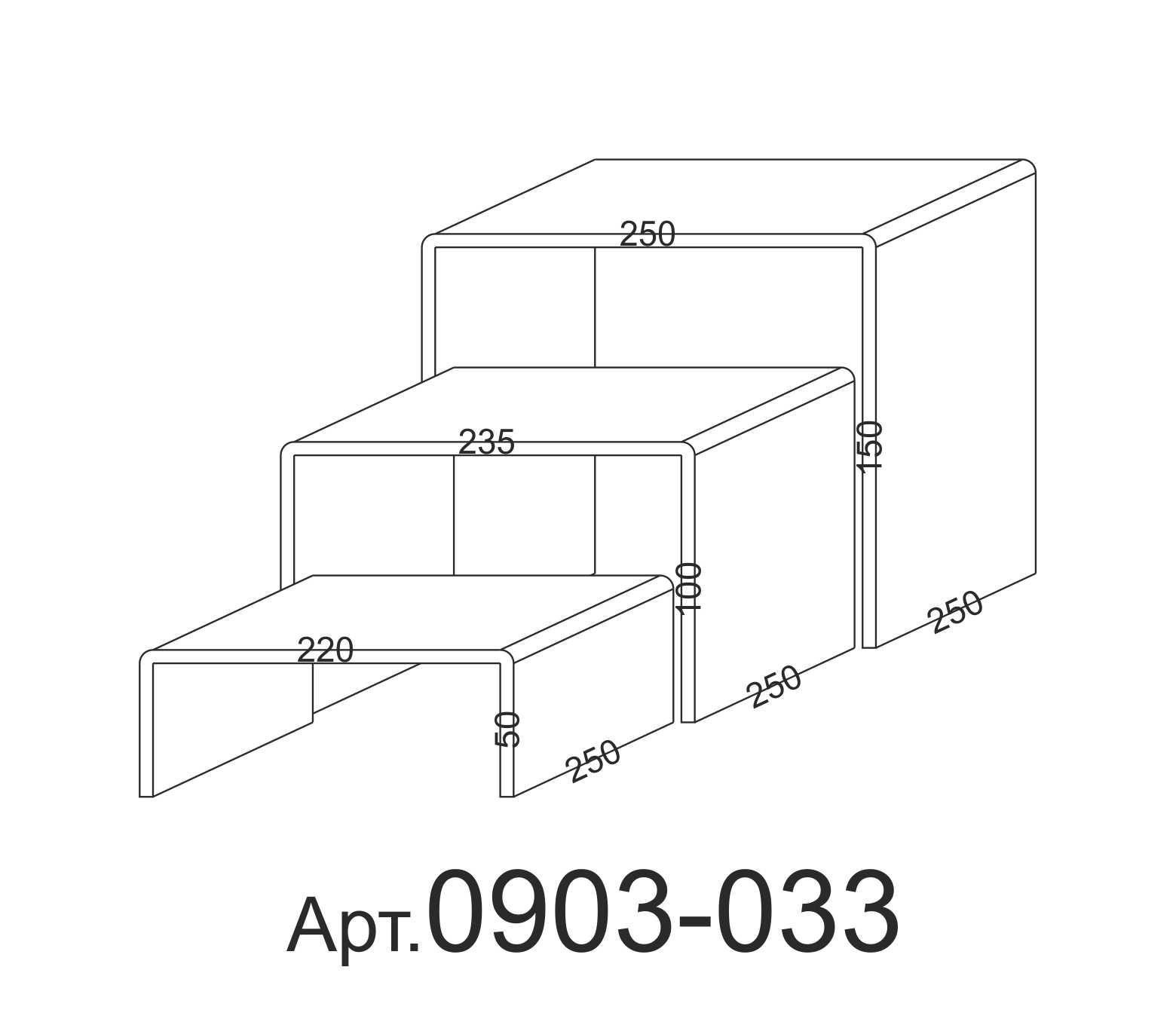 Комплекты подставок различных размеров. Комплект состоит из трех подставок, подставки вкладываются друг в друга. Размер определяется по верхней части, каждая следующая подставка меньше размером на величину толщины стекла.