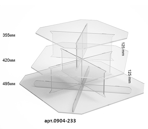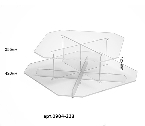 Квадратная витрина для различных товаров. Материал изготовления, оргстекло пять миллиметров, лазерная обработка материала. Эффективно выделяет товары, расположенные на витрине. Возможно изготовление в различной цветовой гамме.