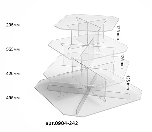 Квадратная витрина для различных товаров. Материал изготовления, оргстекло пять миллиметров, лазерная обработка материала. Эффективно выделяет товары, расположенные на витрине. Возможно изготовление в белом цвете + 20% к стоимости.