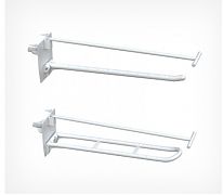 В зависимости от торгового оборудования, которое они дополняют, различают: крючки для картонных рекламных стоек (дисплеев), имеют гарпунные наконечники, с помощью которых они надежно крепятся на любую конструкцию из картона.