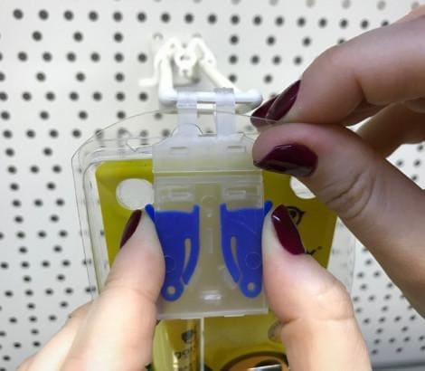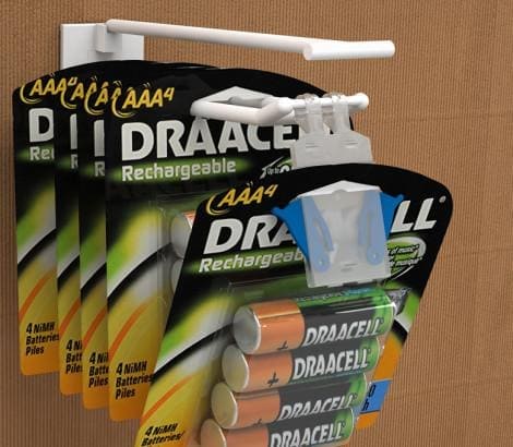 Противокражное устройство защищает товары, размещенные на двойных крючках. HOOK-GUARD оснащен по бокам кнопками,  которые не дают за один раз снять с крючка больше одной упаковки. При снятии покупатель использует обе руки, что служит дополнительной защитой, не давая возможности ворам легко и быстро забрать товар. HOOK-GUARD не потеряется, он надежно крепится к крючку. HOOK-GUARD не является ценникодержателем.