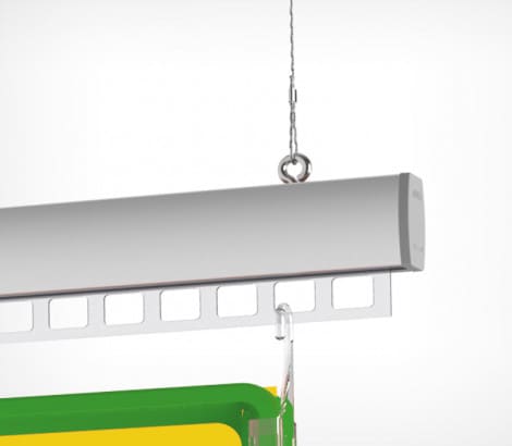 Алюминиевый профиль UNITRACK – основа подвесной системы. Используется в сочетании с перфорированной вставкой , для подвешивания пластиковых рам на крючках.