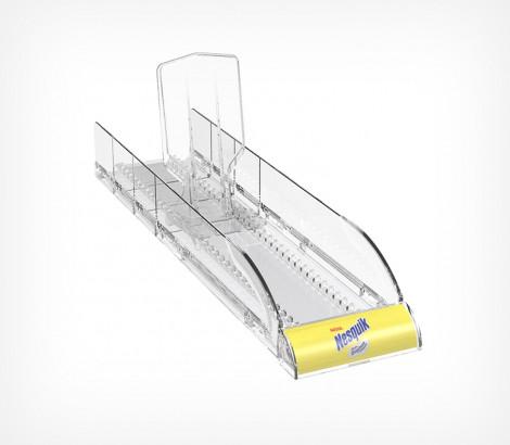 Лоток для выкладки плиточного шоколада позволяет на малой площади полки эффективно уместить большой ассортимент продукции. Поставляется в собранном виде, благодаря этому установка на полку занимает считанные секунды. В набор включены цветные вставки во фронт для организации сегментации на полке по типам шоколада.