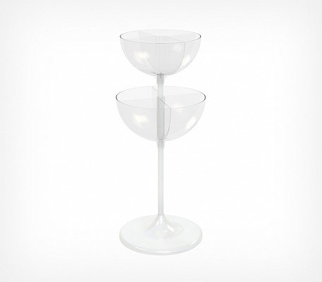 UNIBOWL-TOWER-DIV — двухуровневый дисплей для выкладки товаров в компактной упаковке. Состоит из двух чаш разных объёмов, что позволяет увеличивать объёмы выкладки и эффективность использования торговой площади.
