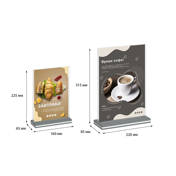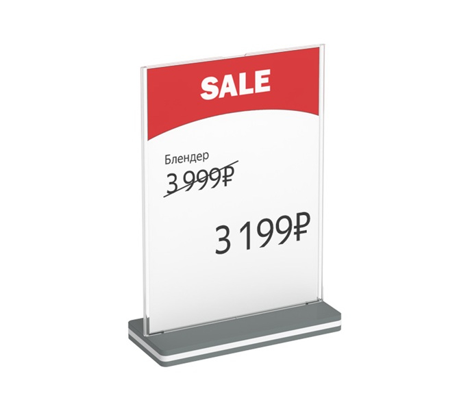 Двухсторонний вертикальный держатель информации формата А4 и А5 с прямой установкой кармана под углом 90°