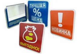 Очень часто в торговых точках возникает необходимость установить вывески, шелфтокеры и шелфбанеры на горизонтальную или наклонную полку, либо на вертикальную поверхность - стеллаж. Для того чтобы их надежно закрепить вам потребуется специальный держатель вывески.