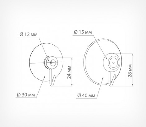 Силиконовая присоска с металлическим крючком для подвешивания рекламных материалов, легких товаров в блистерной упаковке. Диаметр 30 и 40 мм.