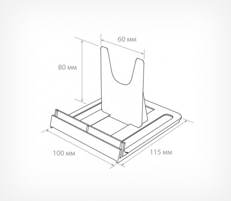 Универсальная сборная подставка под товар идеальна для смартфонов, планшетов, электронных и печатных книг, тарелок и блюд. Применяется в салонах сотовой связи, магазинах электроники и книжных магазинах. Регулируется под разную толщину товара. На переднем крае подставки находится встроенный ценникодержатель. Поставляется в разобранном виде, легко собирается
