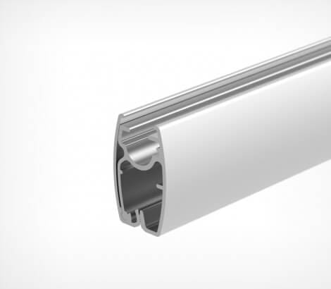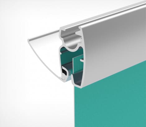 Профиль использует принцип «закусывания» вставляемого материала. Конструкция профиля из 2-х частей без использования пружин обеспечивает надежное крепление рекламных плакатов из  баннерной ткани.  В комплект входят 2 профиля с пластиковыми заглушками, один из профилей оснащен 2мя пластиковыми крючками.
