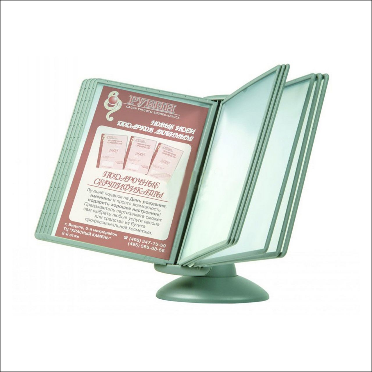 Основание для настольной перекидной системы «Спутник» на 10 рамок DATAFRAME формата А4. Система может вращаться и менять угол наклона держателя рам.