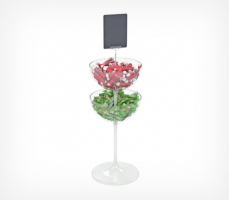 UNIBOWL-TOWER-DIV — двухуровневый дисплей для выкладки товаров в компактной упаковке. Состоит из двух чаш разных объёмов, что позволяет увеличивать объёмы выкладки и эффективность использования торговой площади.