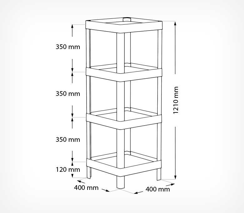 Компактный дисплей-стеллаж из пластика с четырьмя полками предоставляет удобное решение для организации дополнительной выкладки, проведения промо-акций или распродаж.